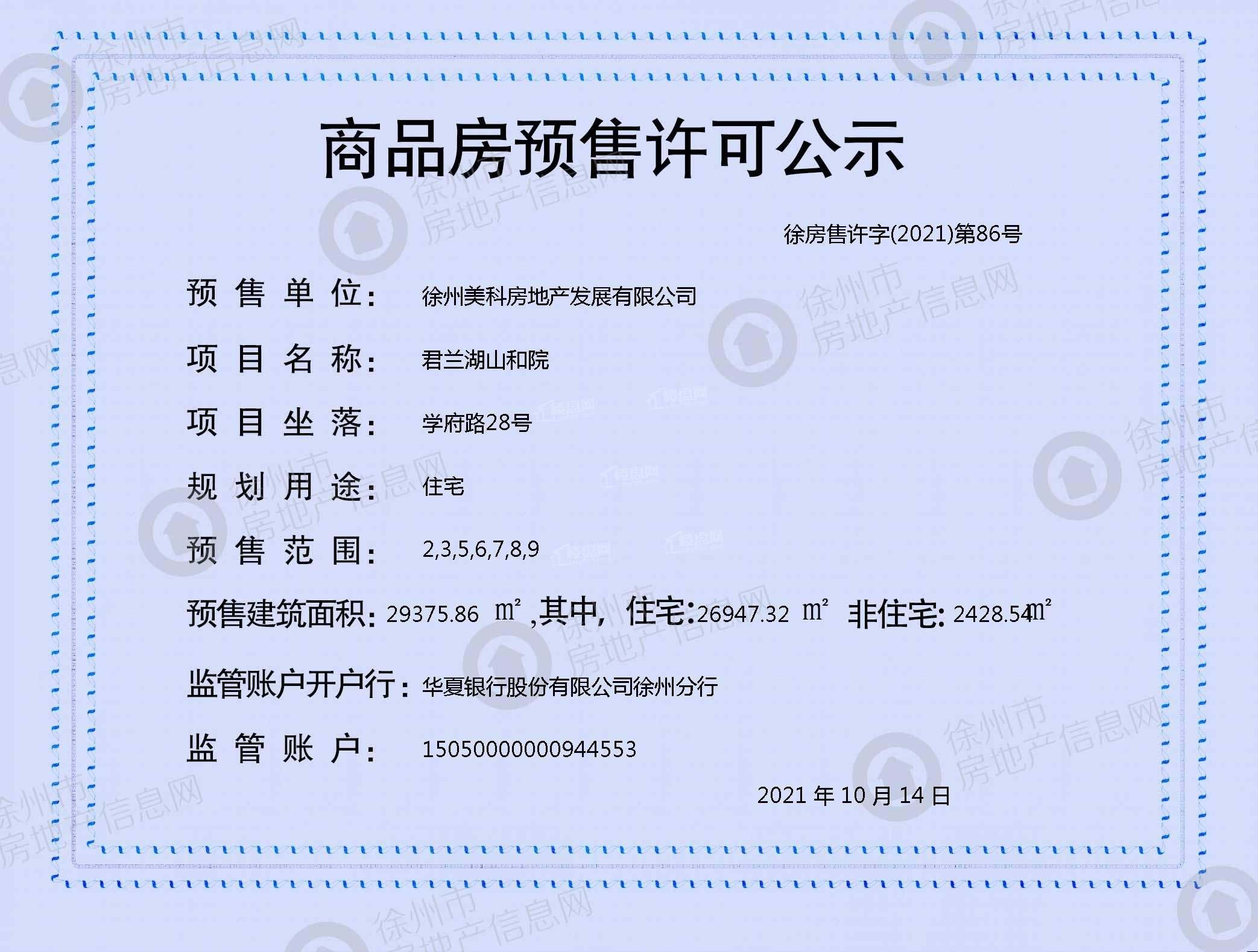 | 徐房售许字(2021)第86号 | 2021-10-14 |